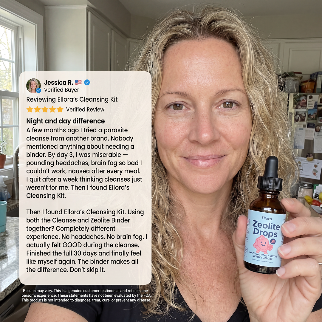 Ellora's Zeolite Cleanse addresses the root cause of these symptoms by removing the toxic metals interfering with your brain function and cellular energy production. By trapping and eliminating mercury, lead, and other metals, your neurons can fire properly, your mitochondria can produce energy, and your mind can function clearly again.